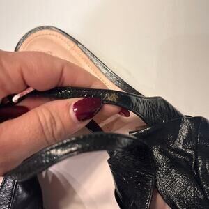 Schutz Shiny Black Leather Slingback Buckle Flats Size 7