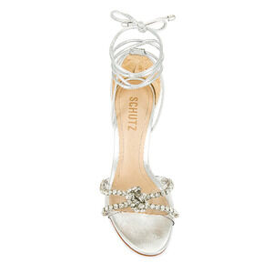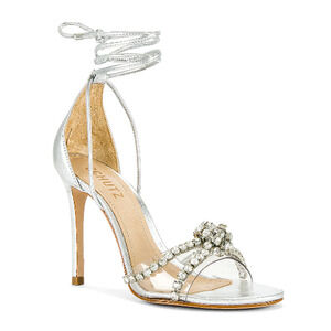 Schutz Silver Rhinestone Ankle Wrap Sandals SIZE 8.5 Stiletto Heel Revolve $138
