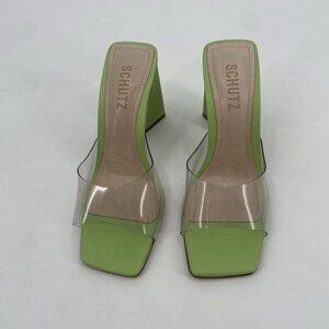 Schutz Size 5.5B Lizah Vinyl Lime Green Sandal Mule Leather Clear Upper Strap