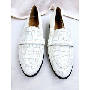 Schutz Size 6.5B Women's White Leather Animal Print Slip On Loafers Brazil NEW