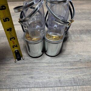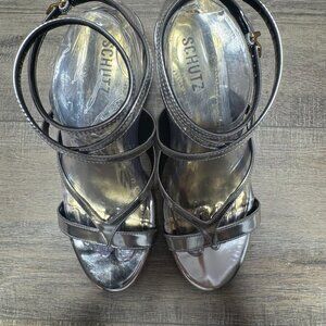 Schutz Stephanie Block Spechio Block Heel Open Toe Sandal Women's Size 8.5
