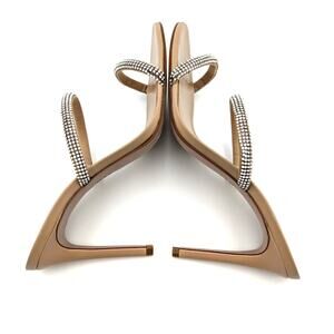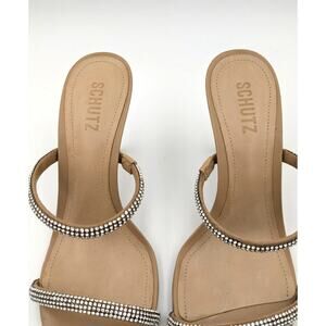 Step into elegance with these Schutz rhinestone-embellished sandals. Featuring a sleek beige color and a chic stiletto heel over 4 inches, they are perfect for formal events, parties, or a night out.