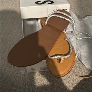 Schutz Tan and Silver Sandals with Metallic Straps