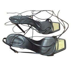 Schutz Vikki Lo Black Strappy Ankle Open Toe Stiletto Heel Sandals US 10 B