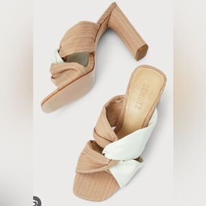 Schutz heels, Schutz Wendy sandals, size 9 heels, color block heels, pearl beige sandals, leather high heel sandals, open toe heels, slide on heels, summer heels, EUC designer shoes