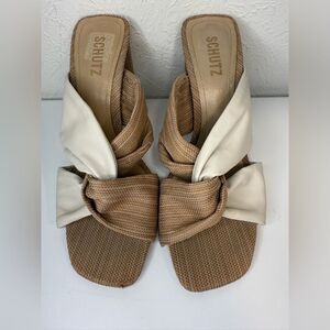 Schutz Wendy Pearl Beige Leather Color Block High Heel Sandals Size 9 EUC