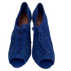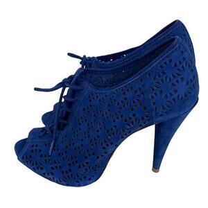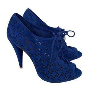 Schutz Women Blue Leather Laser Cut Peep Toe Lace Up Ankle Booties Size 8B