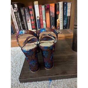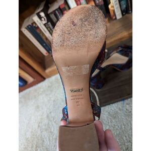 Schutz Women’s 7B Genuine Leather Multicolor Bow Peep Toe Heels Ankle Wrap