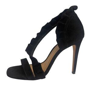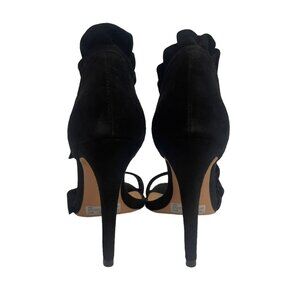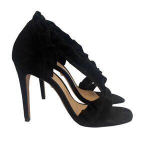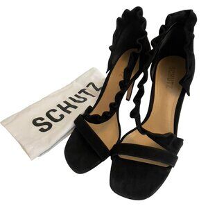 Description: Schutz Womens 9.5 Heel Black Kid Suede Leather NEW Style AIMME Dressy Holiday Event Shoe Special Occasion. Elegant suede d'Orsays with an asymmetric design and ruffled trim. Dust bag included.
