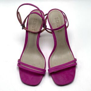 Schutz Womens Altina Ankle Strap Heels Size 5.5B Hot Pink Suede 4" Heel Buckle