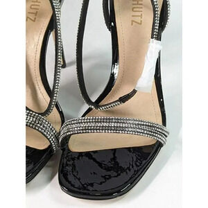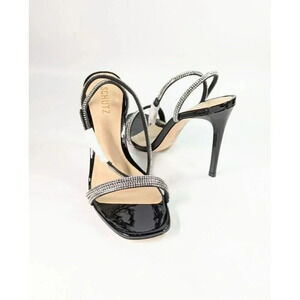 Schutz Women's Altina Glam Crystal Embellished Heel Sandals Black Size 10