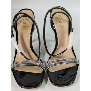 Schutz Women's Altina Glam Crystal Embellished Heel Sandals Size 10 (MSRP $128)