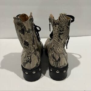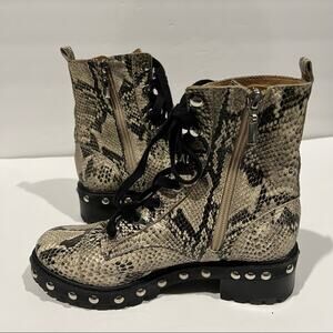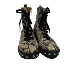 Schutz Women’s Andrea Studded Faux Python Combat Boots Snake Print Size 7 | Edgy Luxe Leather Lace-Up