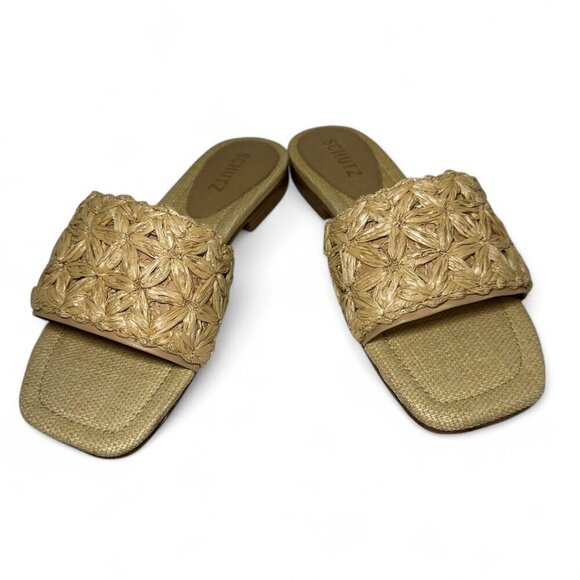 Schutz Women's Ayla Flat Straw Sandal Sz 6.5 B Nude NEW IN BOX