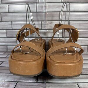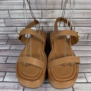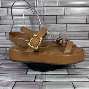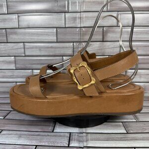 Schutz Women's Brown Leather Wavy Ankle Strap Platform Sandal Shoe Size 9.5-NEW