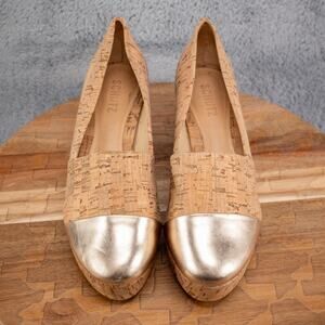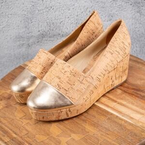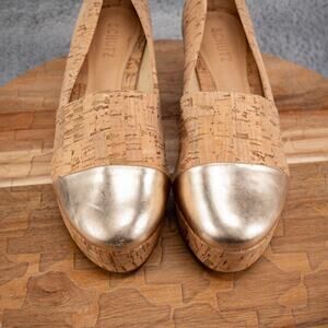 Schutz Women's Cork Platform Wedge Heels Size 10 Boho Metallic Toe