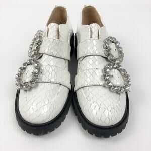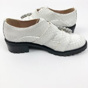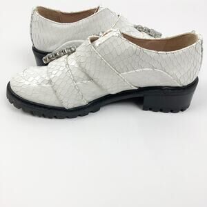 Schutz Womens Doris Size 6.5B Snake Embossed Leather Oxford Shoes White NWOB