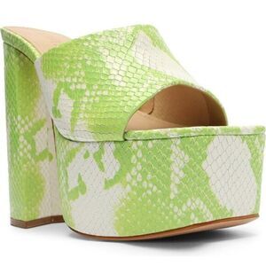 Schutz Women's Leather Sandal Snakeskin Platform Block Green Heels Size 6.5 $149