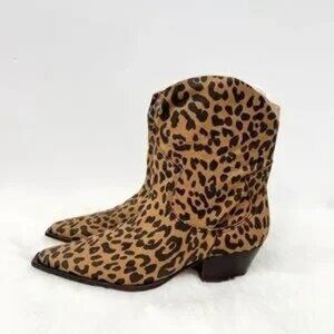 Tags: Bootie, Booties, Animal Print, Heeled, Brown, Black, Heeled, Pointed Toe, Pull On, Cowboy, Rodeo, Western, 2