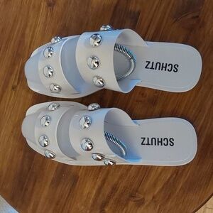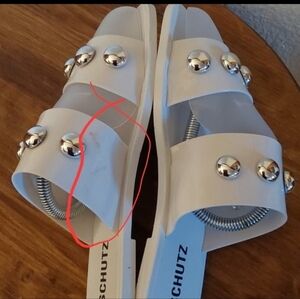 Schutz Womens White Silver Stud Sandals Lizzie Jelly Rubber FLAW Sz.9
