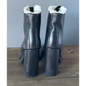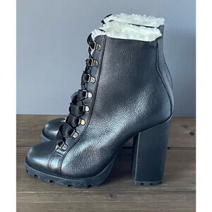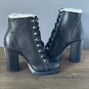 Schutz Women's Zara Ankle Boots Size 10 Black Leather Lace Up Block Heel