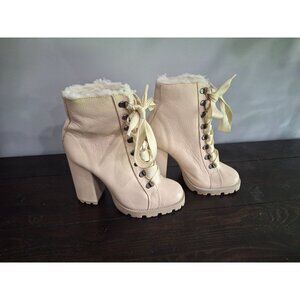 Schutz Women's Zhara Eggshell Lace-up Boots/NWT, Size 8B