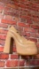 These shoes are brand new without the box! They are a pair of cream / tan Schutz Zayne patent leather Mary Jane style platform pumps in a women's size 8.5 and in the color nude. They have a tall wide platform and heels, and it is patent cream-colored leather all over. They have an ankle strap that is adjustable, and the toes are rounded. The styling and shape is very retro and edgy, and they are easy to pair! There is a small mark, a manufacturing defect, on the toes of one of the shoes, which is photographed.
