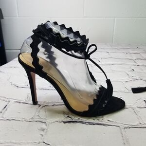 Schutz black ric rac ankle tie sandals heels gorgeous and sexy heels! ankle wrap tie with tassels size 9.5 heel 4.5 black suede