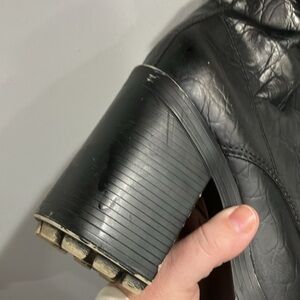 The heels and the buckle appear to be spray painted. Please see additional pictures!