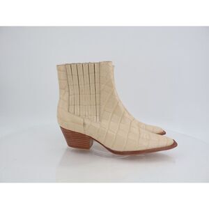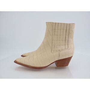 Schutz Briani Crocodile Embossed Leather Bootie Western Ivory Chelsea Pointy 5B
