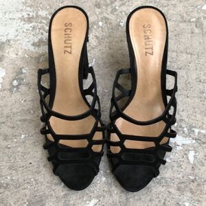 . Check out the pictures. They were worn one time. Size says EU 39 but they fit like an eight. . They had a strap that went around the ankle that has been removed because it wasn’t comfortable. As you see in the pictures back of the heel has some scuffing