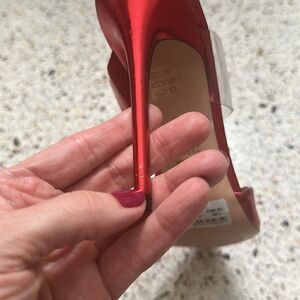Schutz red stiletto heel slingback clear strap 9.5 note: tiny scuffs shown in last 2 pics