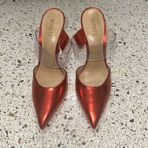 Schutz Sionne red clear transparent heel slingback 9.5