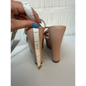 Flaws/Call Outs: areas of dents and discoloration on inner part of wedge heel from bumping against other shoes in pallet. Priced accordingly- see photos for details.