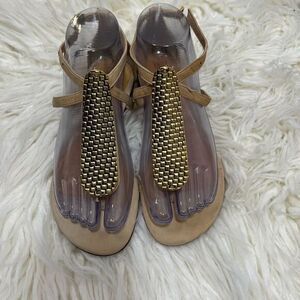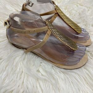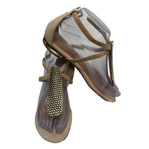 Schutz Womens Flat Sandals Ankle Strap Leather Strappy Thong Casual Gold Size 6B