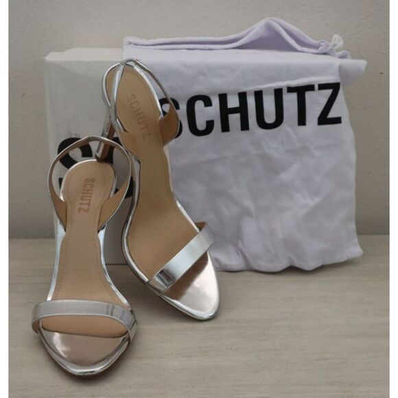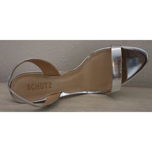 Schutz Women's Sz 11B Prata Silver Metallic Slingback High-High Sandals