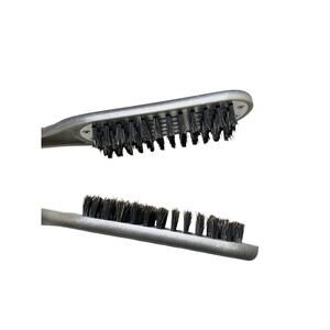 Schwarzkopf Osis Double Straightening Brush with an anodized aluminum plate to protect hair cuticles when heated with dryer. Works just like a flat iron. 100% pure boar bristles. Ventilation holes encourages air circulation. High heat resistant plastic. Great for long hair.