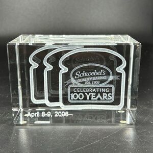 Schwebel’s Bread Celebrating 100 Years Glass Desk Paperweight Rare Employee Gift