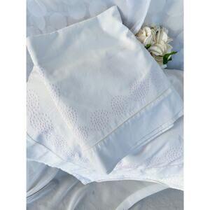 Schweitzer Linens KING Egyptian Cotton Ivory Sheets HAND EMBROIDERY ITALY 3 sham