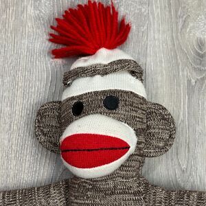 Schylling Sock Monkey Plush 21" Brown Knit Red Mouth Stuffed Animal Toy 2009