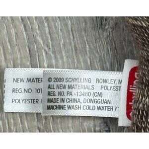 Classic Schylling sock monkey plush from 2009 in heathered brown knit with cream hands, feet, and tail tip. Features the iconic red mouth, red hair tuft, and matching cap with fringe. Measures 21 inches long and made from lightweight, machine-washable polyester for easy care. This nostalgic stuffed animal makes a perfect collectible, gift, or cuddly companion. Schylling is known for timeless, high-quality toys, and this sock monkey adds vintage charm to any collection. Gently pre-owned, light wash pile.