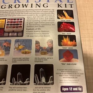 , with a soda can and the components in the box, includes instructions. Unopened.Grow crystals ages 12 and up, 4 crystals, 4” and up unused, new.