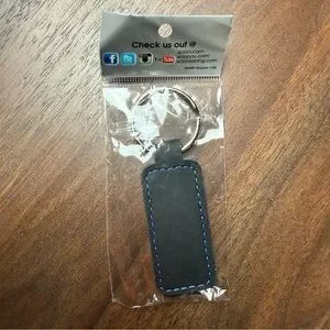 Sleek black Scion (Toyota) keychain featuring blue stitching. Perfect for car enthusiasts. Bundle and save!