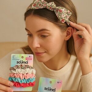 Scünci Floral Hair Accessory Set – 2 Headbands & 5-Piece Scrunchie Pack (NWT)