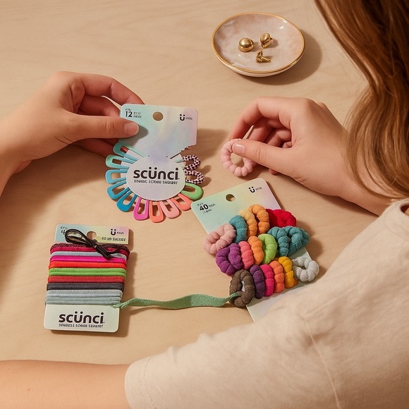 Scünci Hair Accessory Bundle - Snap Clips, Ponytail Holders & No-Damage Elastics (NWT)