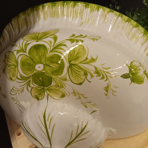 Italian handpainted green and white decorative sconce.