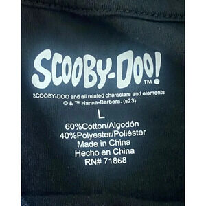 This Scooby-Doo T-shirt features a big graphic print of the beloved cartoon characters. The short-sleeved shirt is made of a comfortable blend of polyester and cotton, with a regular fit and a crew neckline. This T-shirt is perfect for fans of the 90s cartoon and is available in adult size Large. It is a must-have for any Scooby-Doo enthusiast. In excellent pre owned condition.