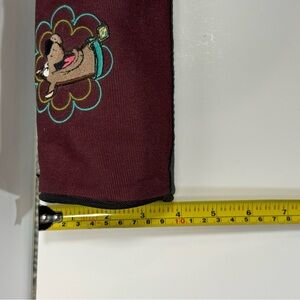Burgundy pencil case featuring a fun cartoon dog design. Ideal for organizing.