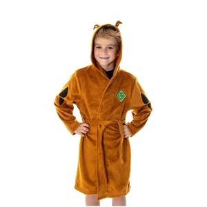 Scooby-Doo Hooded Robe Kids Unisex Fleece Bathrobe Belted Boys Girls Brown Dog