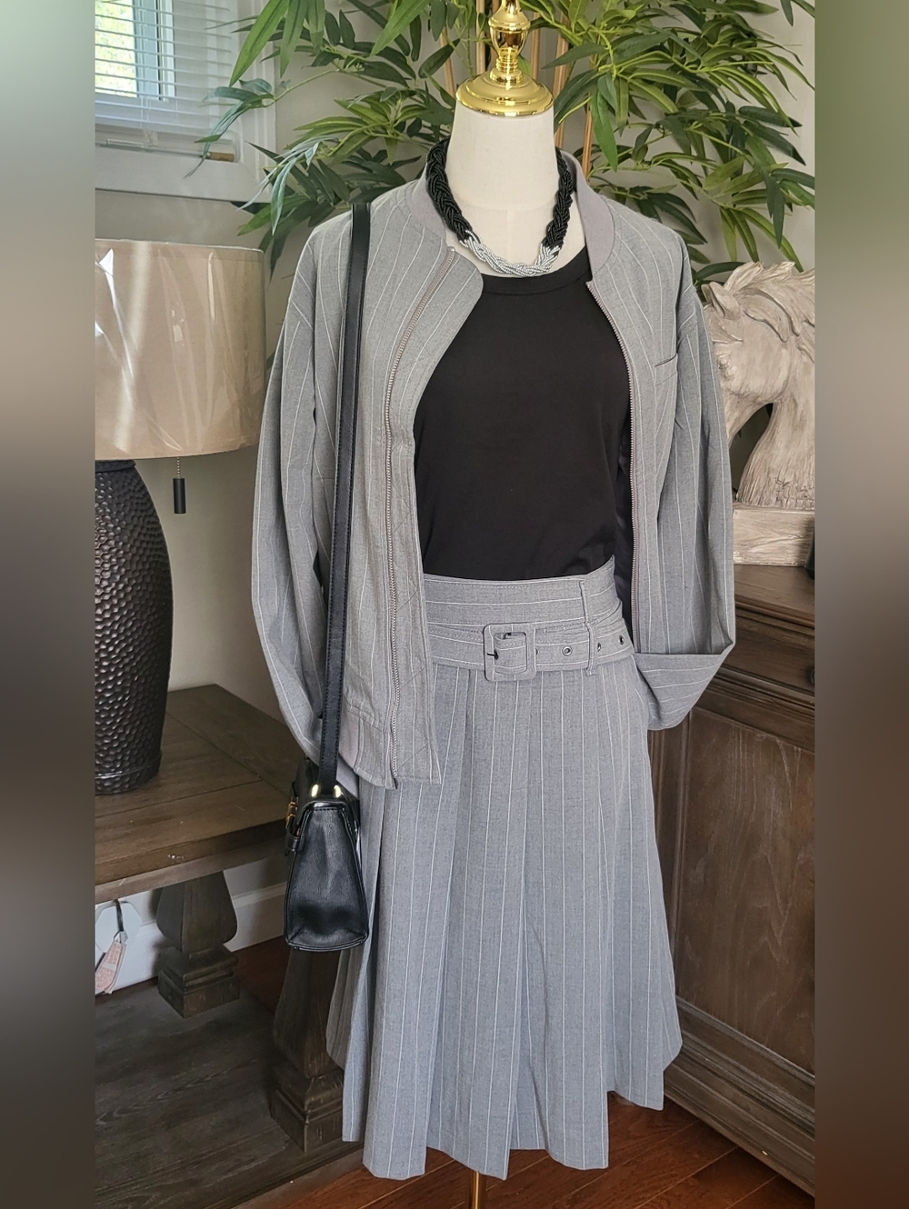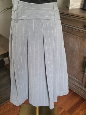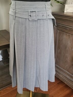 Two side pockets, pinstripe pleated midi skirt, with banded waist and bellted, NWT brand new.